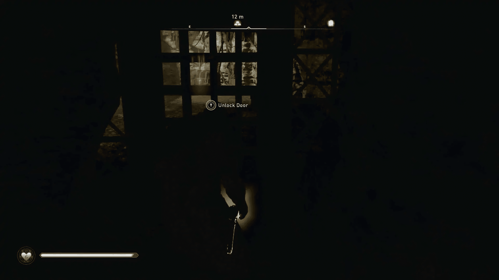 Once you’ve collected the tablet, you will proceed towards the barred door ahead of you and exit the Old Cellar. You can either shoot the lock or melee it to open the door.
