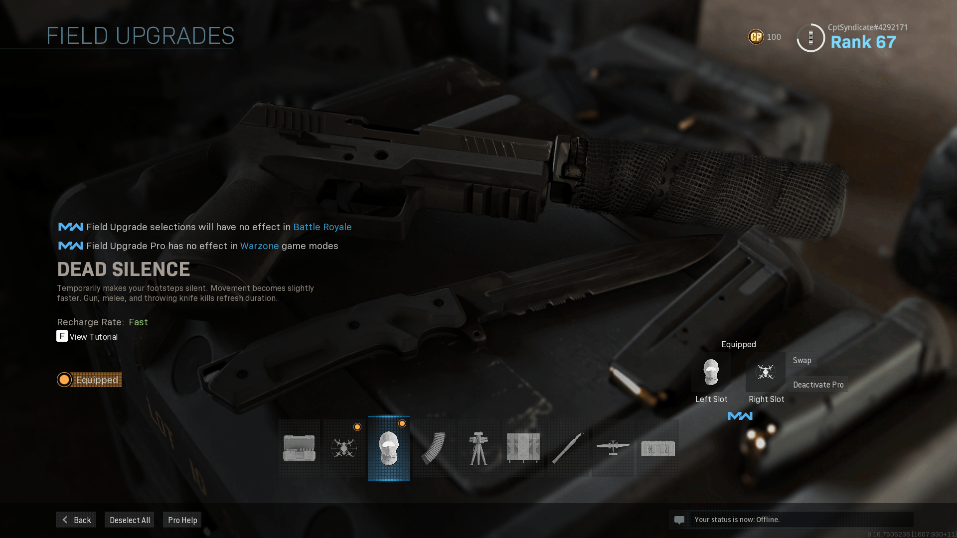 The Dead Silence Field Upgrade makes your footsteps quieter for a brief period of time, allowing you to get closer to your enemies without having to worry about them discovering you. They can still hear your weapons of course.