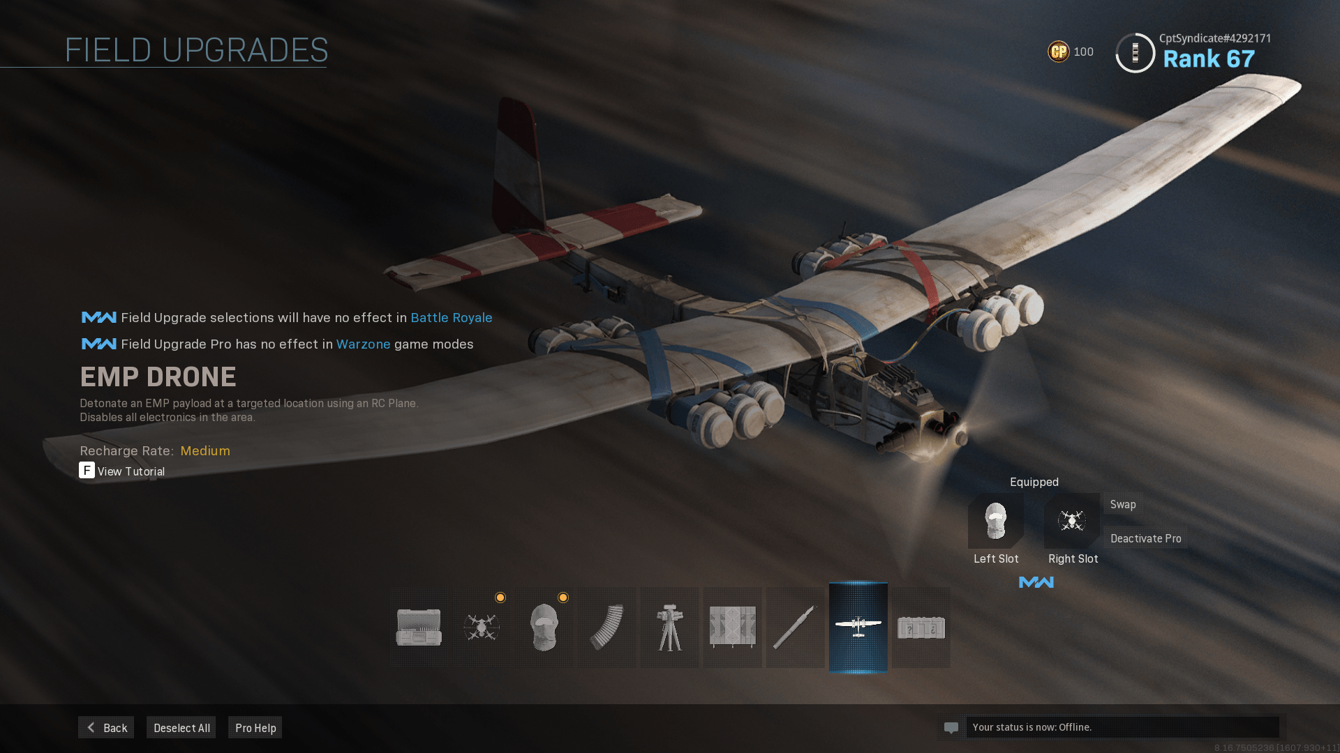 EMP Drones can be used to deactivate all electronic devices in a targeted area. When you activate this Field Upgrade, you get the option to choose where you want to direct the EMP Drone on your Tac Map.