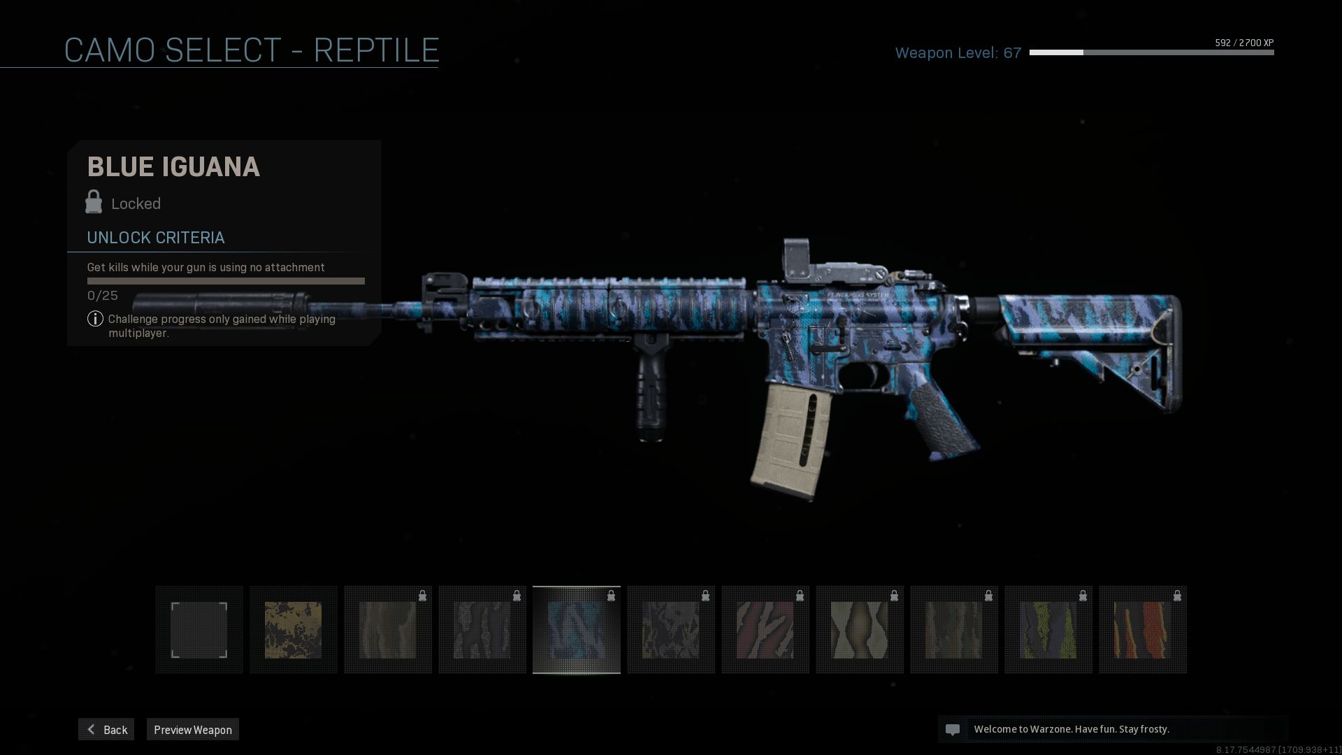 Blue Iguana – Get 25 kills while your gun is using no attachment