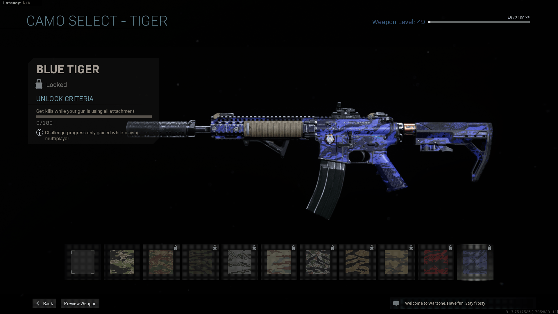 Blue Tiger – Get 180 kills when your gun is using all attachment