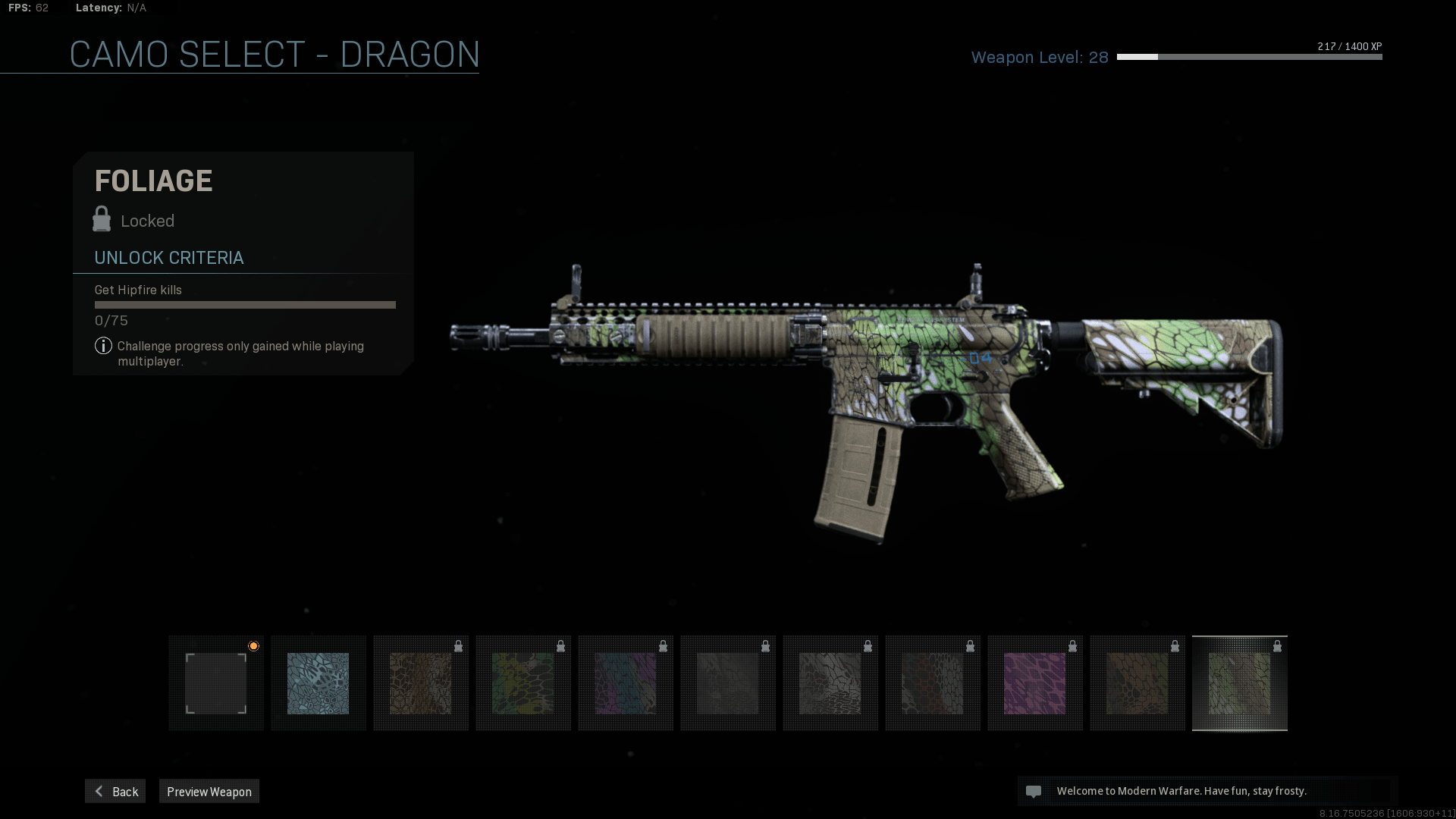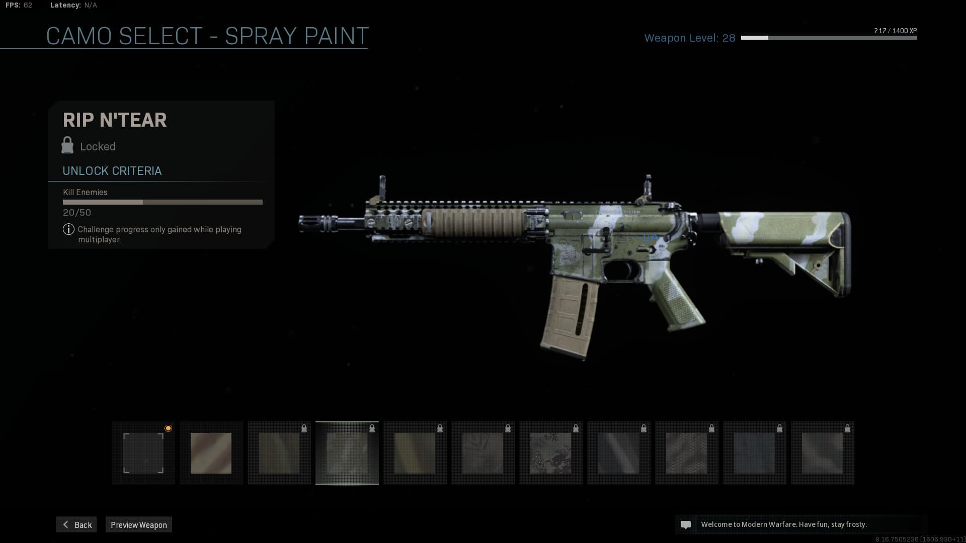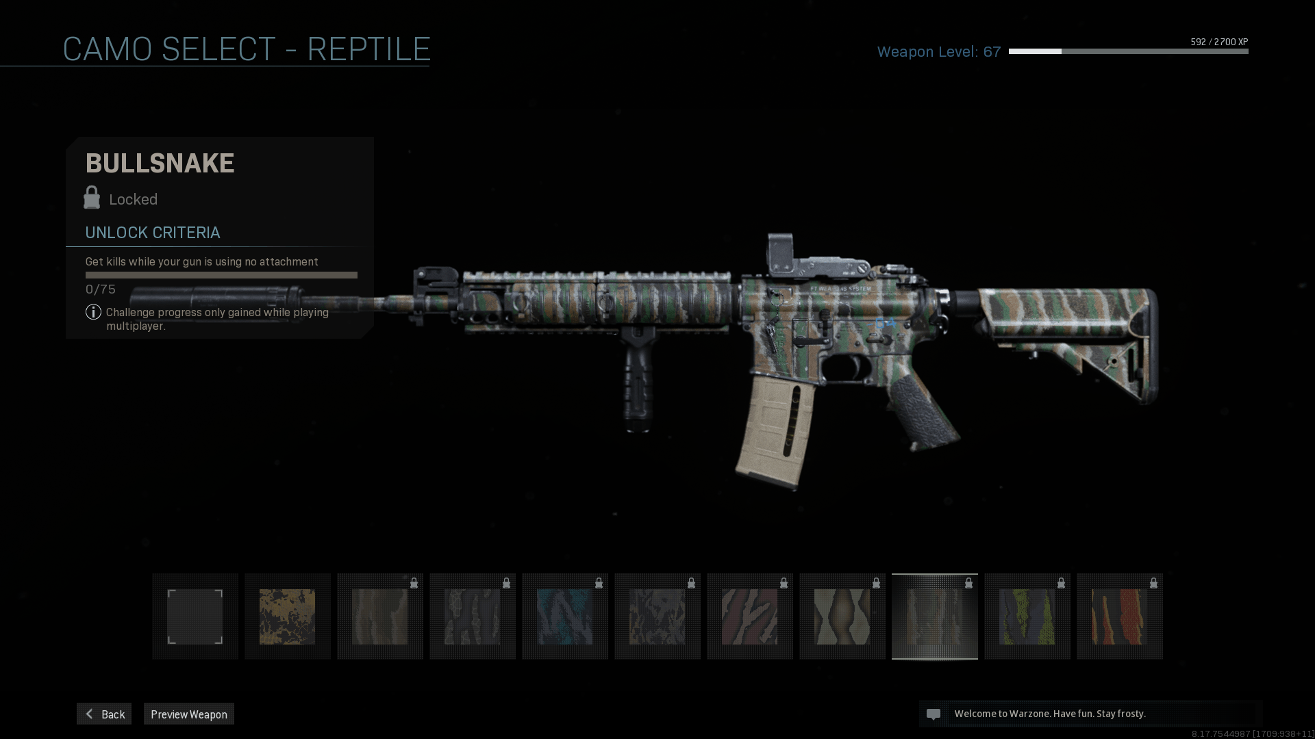 The following is a list of all the camo skins in Call of Duty Warzone and how to unlock them. Just note that every single gun in the game has the exact same camo selection.