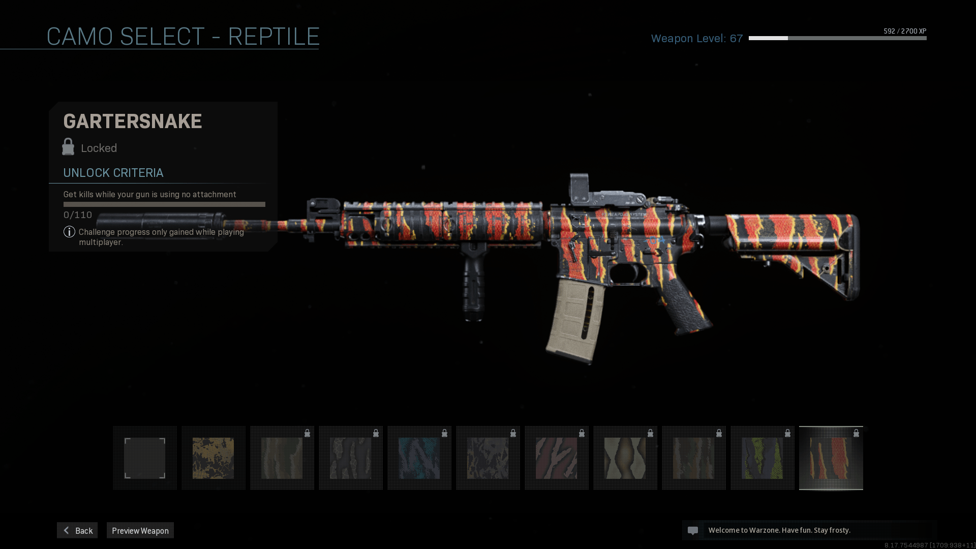 Gartersnake – Get 110 kills while your gun is using no attachment