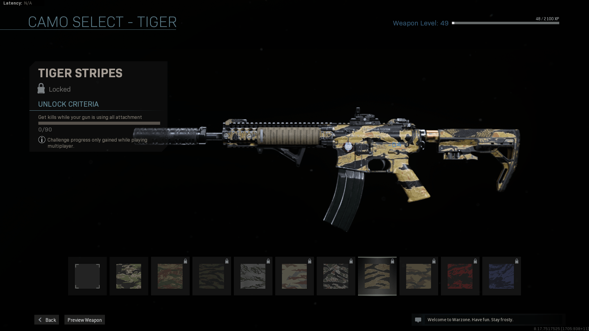 Tiger Stripes – Get 90 kills when your gun is using all attachment